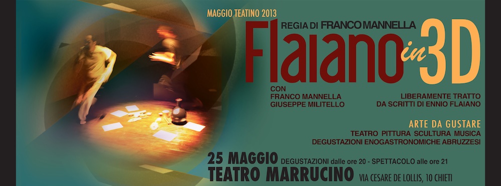 Franco Mannella, attore, doppiatore, regista e direttore artistico di Arte da Gustare, ha deciso di rendere omaggio a Chieti portando in scena Flaiano in 3D, uno spettacolo liberamente tratto da scritti di Ennio Flaiano, autore e giornalista abruzzese.